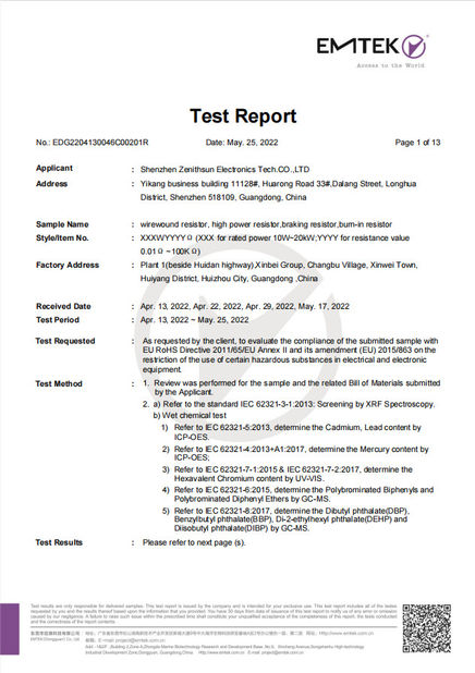 Elektronik-Technologie Co., Ltd. Shenzhens Zenithsun wurde im Jahre 2007 gegründet, ist eine des ersten Lieferanten mit internationaler Wettbewerbsfähigkeit für Leistungswiderstände u. Lastsbanken in China. Sie ist mehrmals hintereinander nationales High-Teches Unternehmen zugesprochen worden und Shenzhen spezialisierte sich, spezielles u. neues Unternehmen. Seine Produktionspflanzenkleider ein den Bereich von 8.000 Quadratmetern, Bremswiderstände der hohen Qualität, Leistungswiderstände, Hochspannungswiderstände, Regelwiderstand, wirewound Widerstände, wassergekühlte Widerstände, Automobilwiderstände, Zementwiderstände, Messwiderstände, Shunts, Lastsbanken und andere für Militärherstellung, die Luftfahrt-, neuen Energiefahrzeuge, WindStromerzeugung, photo-voltaische Stromerzeugung, Schienendurchfahrt, Frequenzumsetzer, Servomotor, numerische Steuerung, Aufzug, Roboter, Stromversorgung, Generatorlaststest, Schiff, Dock, Rechenzentrum, Leistungselektronik und andere Felder bereitstellend.